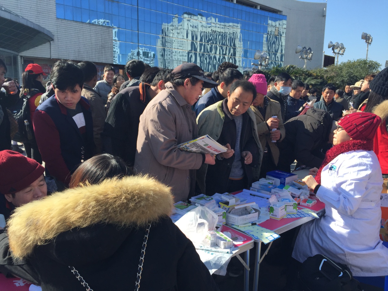 124131,為期一周的志愿服務活動現(xiàn)已結束。在本次活動中,我院共服務了2000余人次,發(fā)放藥品人數(shù)1500余人,藥品金額共計約8000元。凜冽的寒風吹不走我們心中的熱情,這樣的服務活動更讓這些準備返鄉(xiāng)的新溫州人心中涌起陣陣暖流。作為服務活動隊伍中唯一一家醫(yī)療衛(wèi)生單位,我院為這些返鄉(xiāng)的旅客準備了一些急需的常備藥品,同時發(fā)揮我們醫(yī)院的專業(yè)特色,為有需要的人提供精神衛(wèi)生相關方面的咨詢。服務臺前站滿了準備返鄉(xiāng)的旅客,你一言我一語,義診醫(yī)生都一個個進行耐心解答。與此同時,我院還為大家提供了免費測量血壓的服務項目?!斑@么大冷天兒的你們真的是為人民服務啊!”一個來自哈爾濱的大姐滿心歡喜,看到這樣一張張真誠的笑臉,我們倍感自豪。